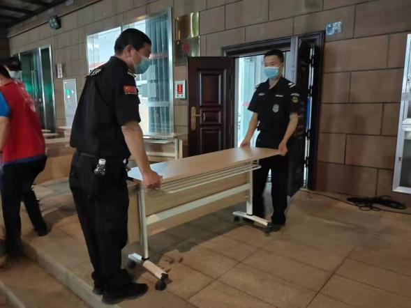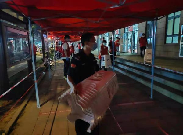 炎炎夏日下,公司隊員全力協(xié)助社區(qū)工作人員搭棚、擺桌椅、掛條幅、貼指示牌、拉警戒線,做好核酸檢測現(xiàn)場的準備工作。一切嚴格落實現(xiàn)場安保工作要求,扎實做好疫情防控各項措施。