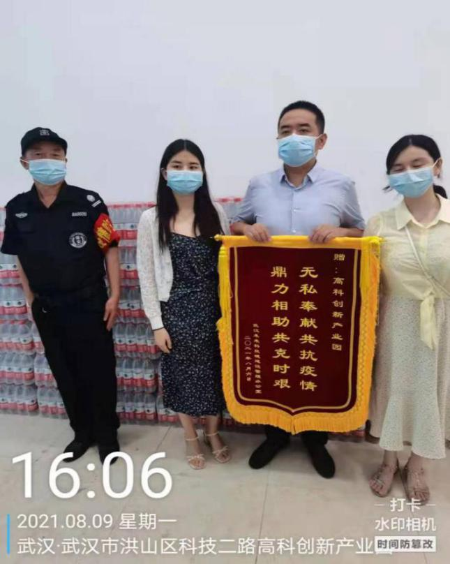 8月9日,武漢未來科技城建設管理辦公室為了對我司隊員辛勤付出表示感謝,特將一面寫有“無私奉獻共抗疫情,鼎力相助共克時艱”的錦旗送到我們隊員手中。