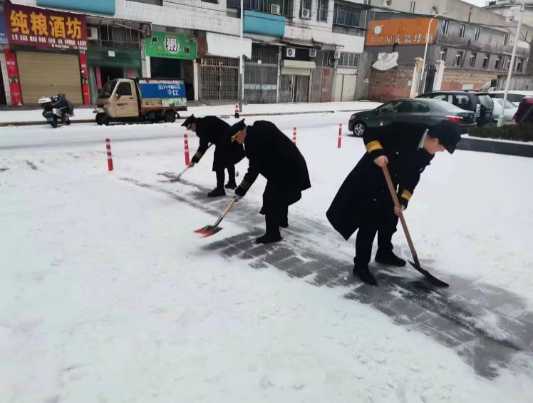 新年瑞雪到,金城裹銀裝 。2月21日,受冷空氣影響,湖北多地遭遇凍雨、暴雪等惡劣天氣。這場農(nóng)歷新春第一場雪,為城市帶來了美景但也給人們的出行帶來諸多不便和安全隱患。領(lǐng)威保安公司迅速響應(yīng),以雪為“令”,全力以赴投入到除雪破冰的行動中。他們以實際行動踐行領(lǐng)威保安隊伍的服務(wù)品質(zhì)和責(zé)任,確??蛻魡挝坏纳敭a(chǎn)不受損失,用“小行動”保障“大安全”。