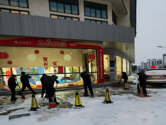 在居民小區(qū),他們彎腰揮鍬、奮力掃雪,從單元門口到小區(qū)主干道,一點點鏟除冰層、歸集積雪,為早起出行的居民開辟出安全通道;在工業(yè)園區(qū),他們加密巡邏頻次,對關(guān)鍵區(qū)域反復(fù)除冰,還有一部分人堅守門崗,對進出車輛進行防滑提醒,引導(dǎo)有序通行;在商業(yè)街區(qū),他們分工協(xié)作,有的清理車輛出入口,有的在臺階上鋪防滑墊、設(shè)警示標識,確保企業(yè)員工通勤不受影響;在學(xué)校周邊,他們提前抵達崗位,趕在學(xué)生上學(xué)前清理完校門口及周邊道路的冰雪,為孩子們的安全出行保駕護航。