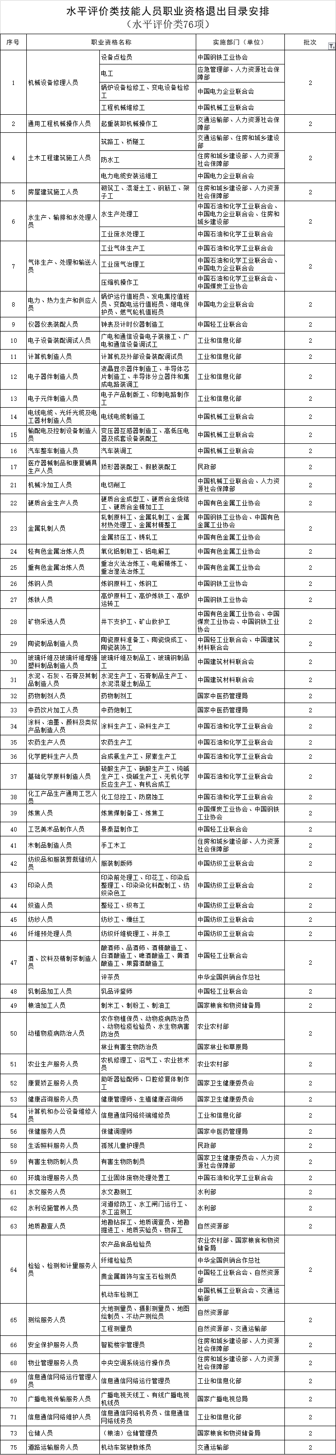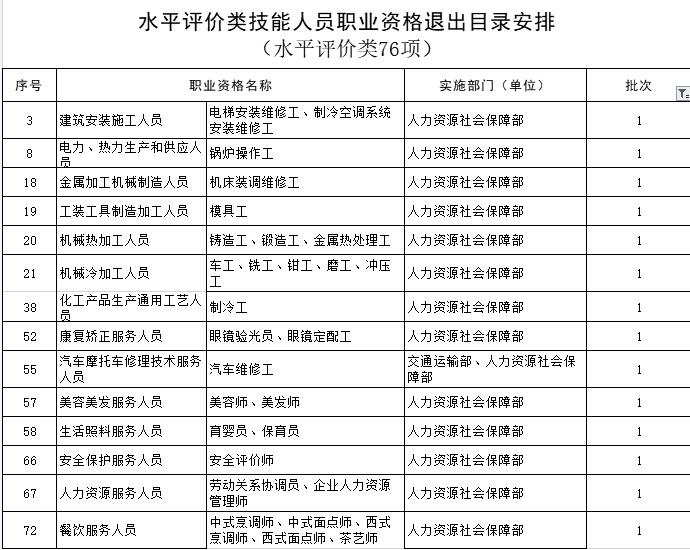 附 件:水平評(píng)價(jià)類技能人員職業(yè)資格退出目錄安排
