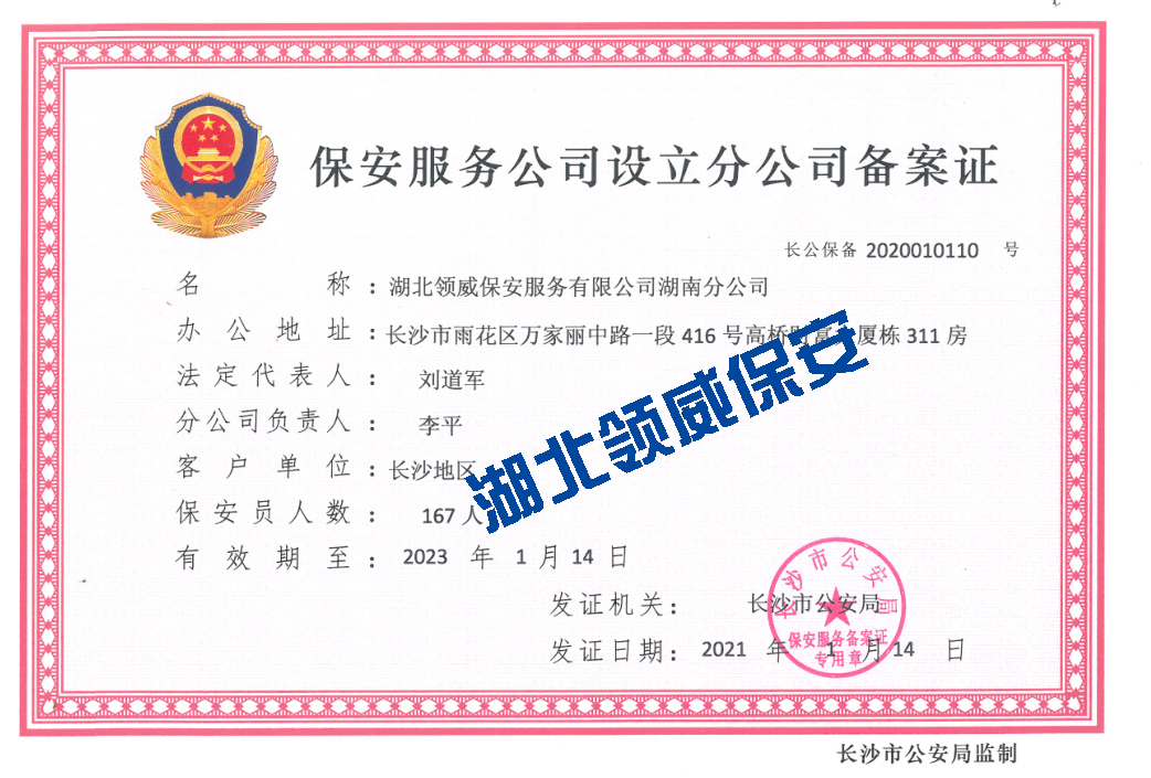 湖北領(lǐng)威保安服務(wù)有限公司專注荊門保安、荊門安保、荊門臨保、荊門秩序維護等服務(wù)